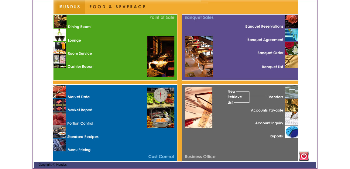 The Business Office module is used to post invoices to vendor accounts; enter vendor profiles; post accounts payable; display account balances; and produce food and beverage reports.